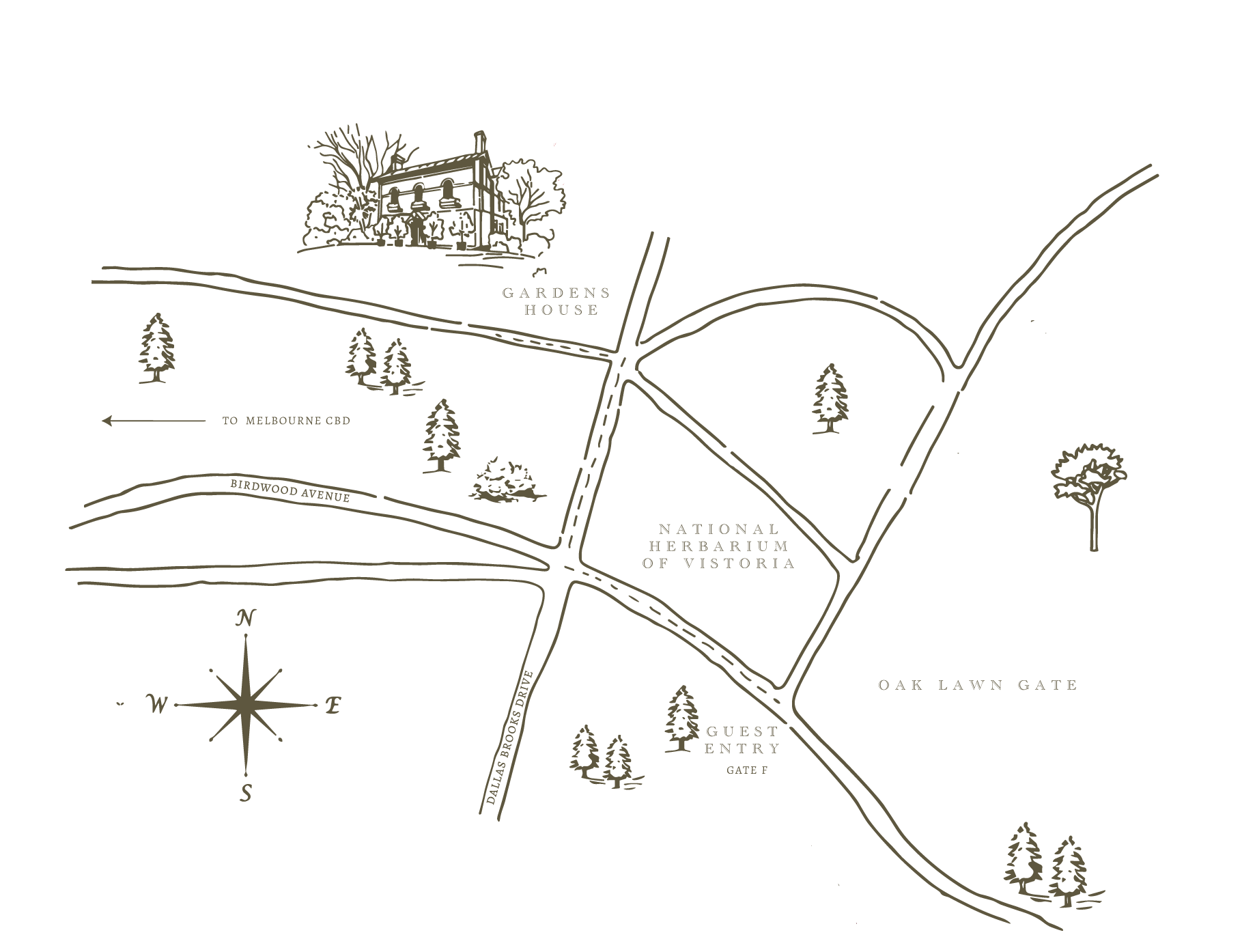 We recommend taking a tram or uber to get from the ceremony venue to the reception venue. Please note that Gardens House is accessible only by foot from Birdwood Avenue (it is a short walk through the Royal Botanical Gardens). The venue's policy is that only guests with limited mobility may be chauffeured to the front of Gardens House by a professional driving service or a family member. Please confirm in advance if you require this service, so that we may make appropriate arrangements with the venue.